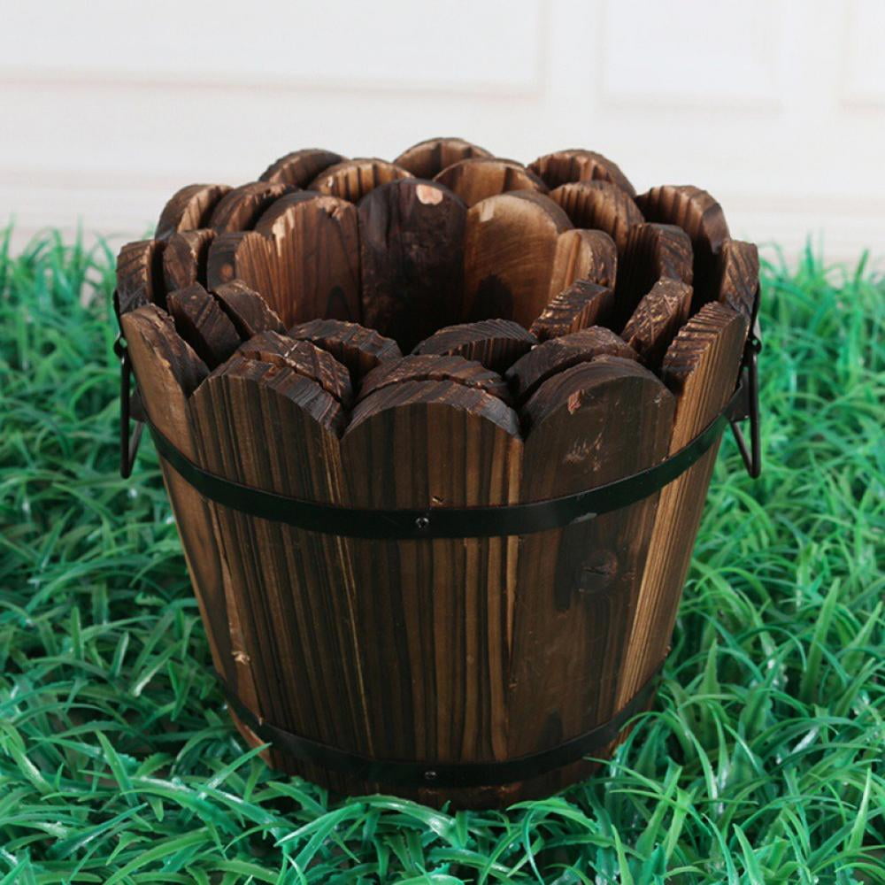 Popfeel Small Wooden Bucket Barrel Planters Rustic Flower Planters Pots Boxes Container With Drainage Holes For Indoor Home Decor Small Plants Brown 1pc Walmart Com