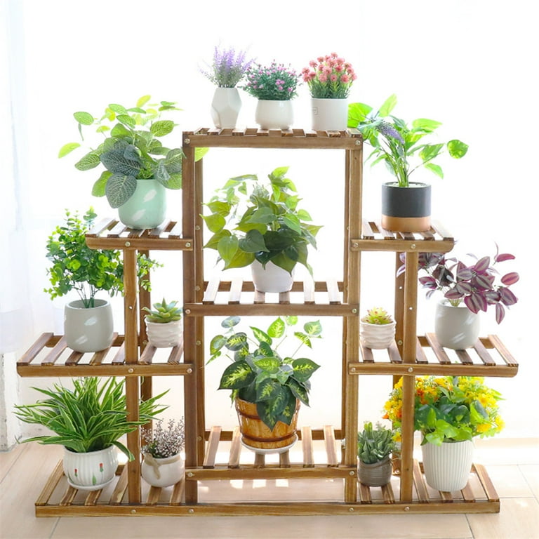 9 Tier Large Carbonized Wood Plant Stand Flower Pot Display Shelf Indoor Outdoor Walmart Com